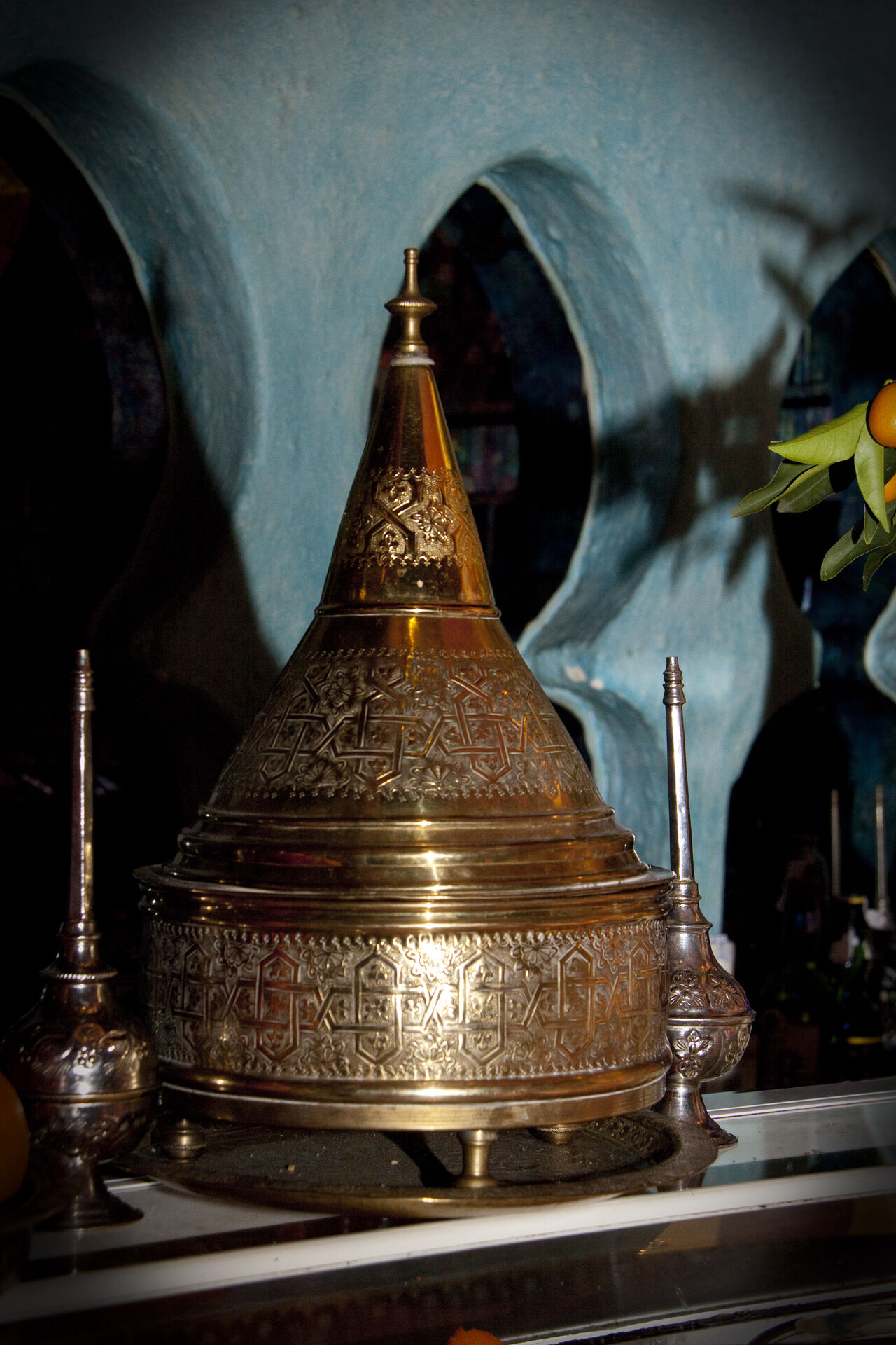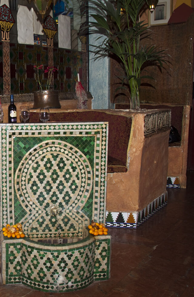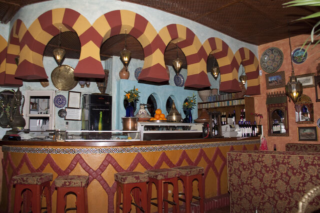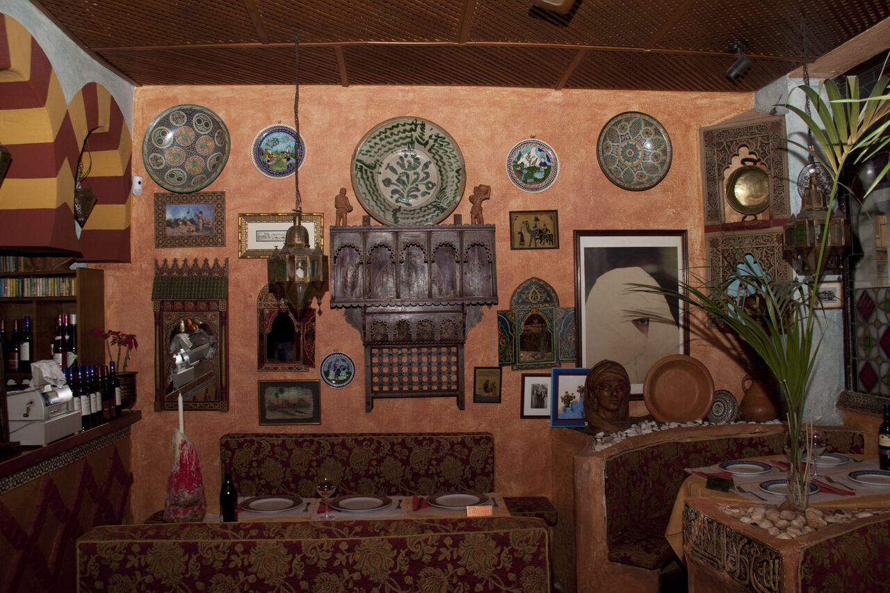 Todo ello acompañado de suave música andalusí, árabe, Maluf, turca, egipcia e incluso jazz y música clásica. Podrá disfrutar de nuestros vinos internacionales de Marruecos y Argelia, sin olvidar el característico té a la menta con pastas marroquíes para terminar.